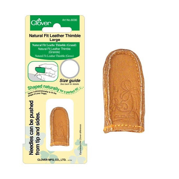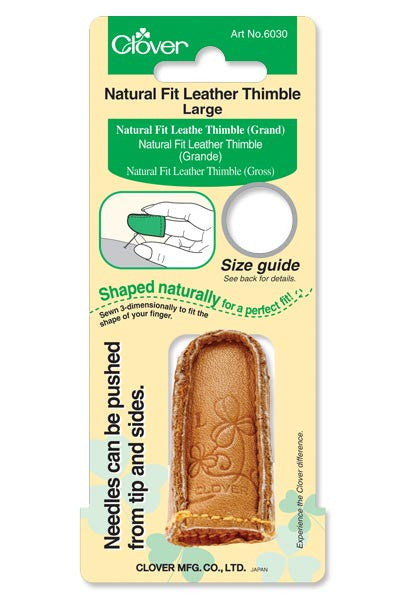 A brand new shape created to give you a perfect fit. The first ever finger-shaped leather thimble, from 3-dimenstional stitching technology. No seams or stitches where the needle hits the thimble, allowing the needle to be pushed from the most convenient spot. The unique shape creates a smooth curve from the edge of the fingertip to the middle of the finger. A cozy, natural fit.